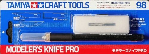 【 繊細な作業をこなすハイグレードナイフ 】 いっそう繊細な切る、削る作業を可能にするモデラーズナイフのハイグレード版です。グリップは滑りにくく手にしっくりとなじむエラストマー樹脂製。チャックは金属製で刃の固定も確実です。3タイプそれぞれの替刃も用意、モデラーズナイフの替刃も使えます。保護キャップ付き。替刃はプラスチックケースに入っています。